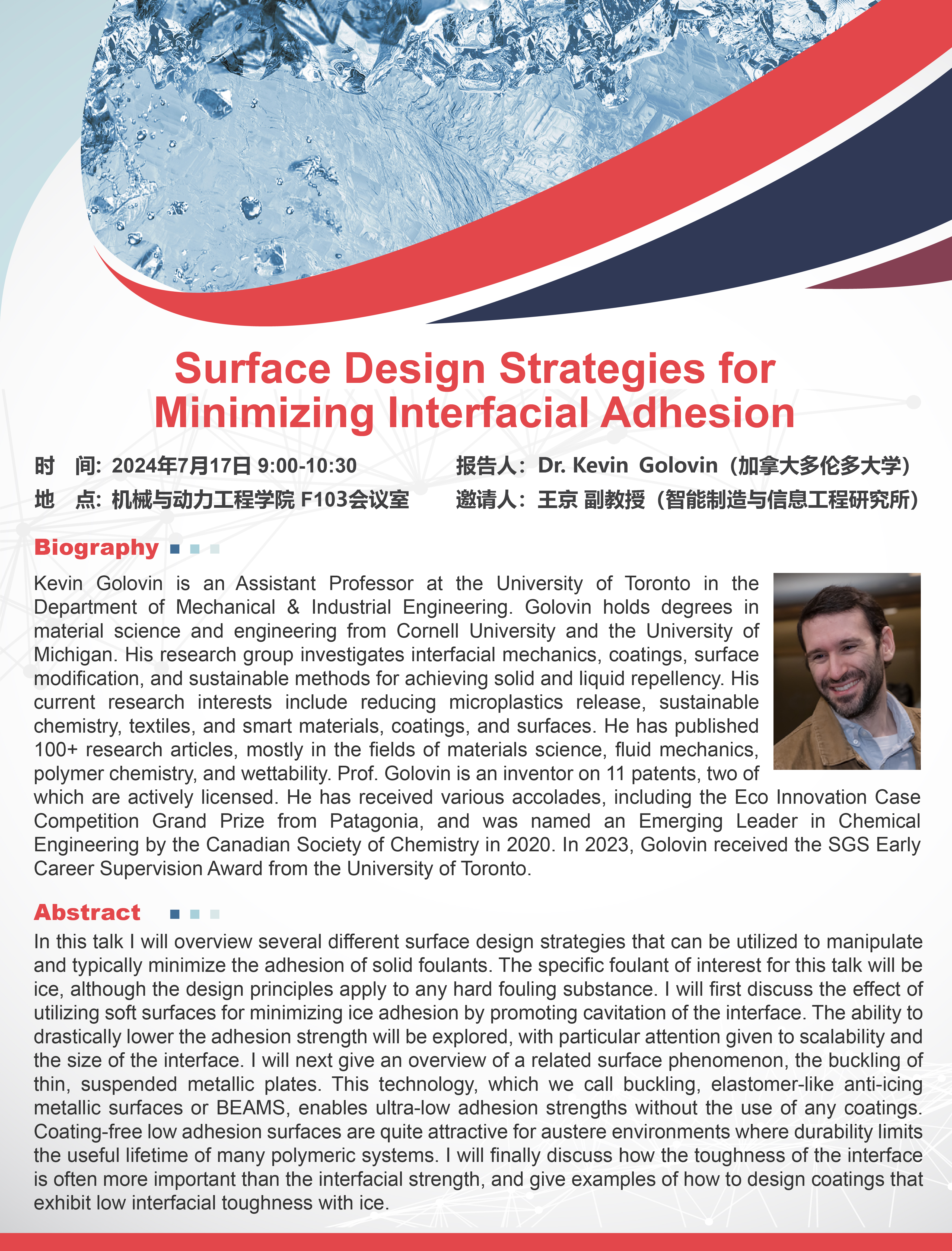 题目:Surface Design Strategies for Minimizing Interfacial Adhesion