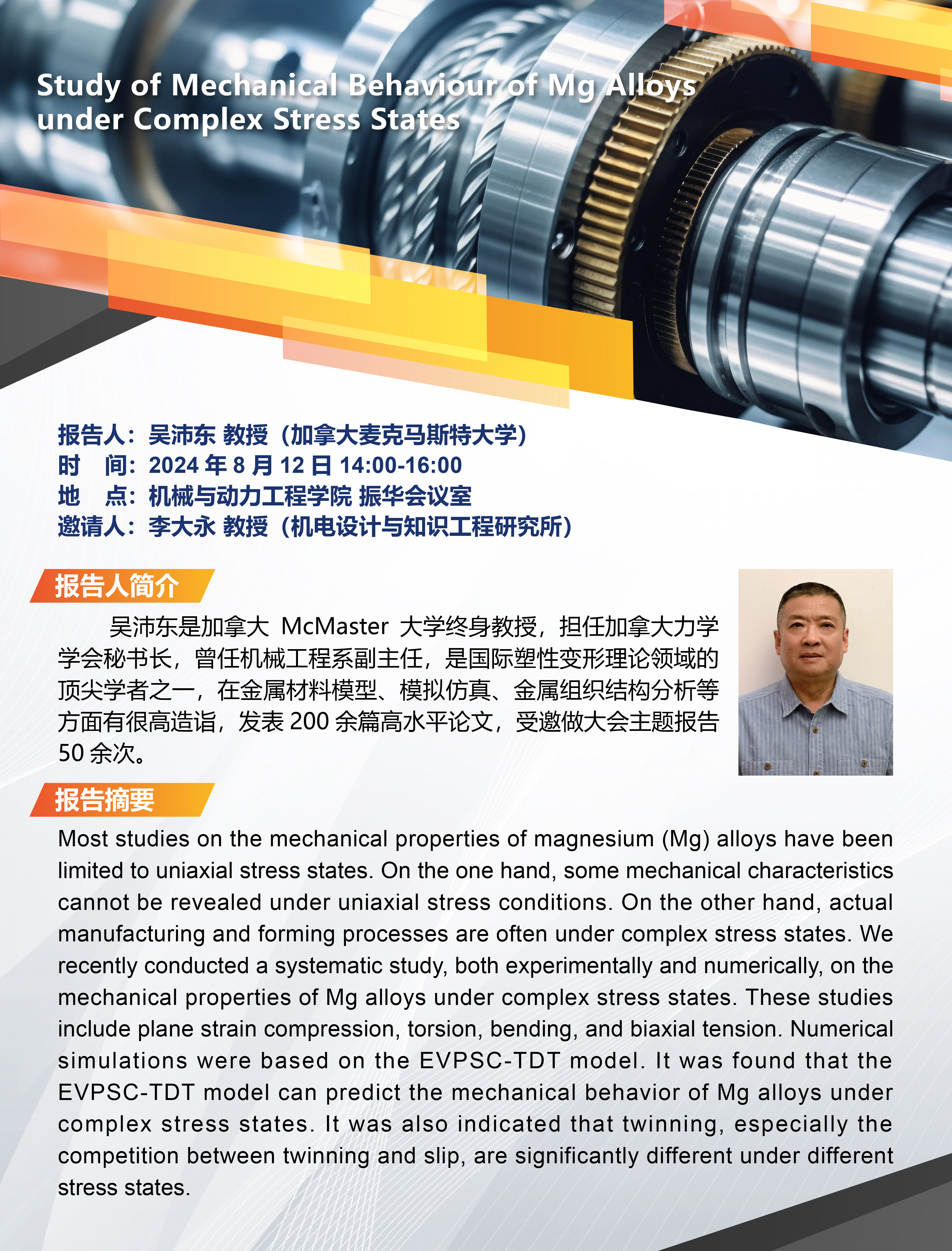 题目:Study of Mechanical Behaviour of Mg Alloys under Complex Stress States