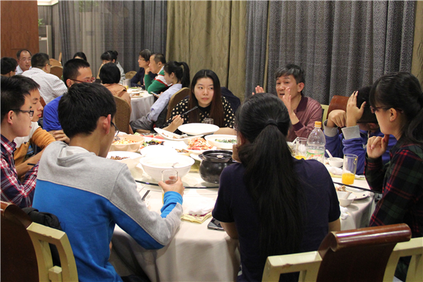 面试顺利结束后,2012级至2015级共计13名瑞电士助学金受助同学与公司领导相聚留园,参加一年一度的瑞电士助学金晚宴。公司总经理郑晓峰学长也出席了晚宴,并与学弟学妹们畅谈了自己的工作经历,分享了宝贵的面试经验,热情欢迎各位同学参与到公司开展的志愿服务活动中。