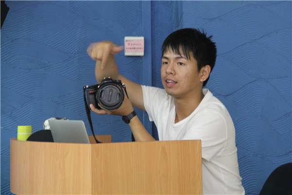 於明亮从数码单反的特性入手,详细讲解单反的快门、光圈、感光度以及焦距调节等。在实际操作上,他向同学们具体介绍了单反对焦、色温和白平衡、取景方式、持机姿势以及构图选择等问题。於明亮还为同学们讲解了舞台拍摄、体育摄影、合照拍摄等拍摄技巧以及简单的后期处理知识。