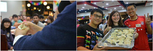 活动中,中外学生共同体验了中国传统食物饺子的制作过程,从制作到品尝欢笑不断。留学生们还在中国学生的介绍下品尝了冰糖葫芦、凉皮、鲜肉月饼、小笼包等各色地方美食。