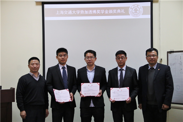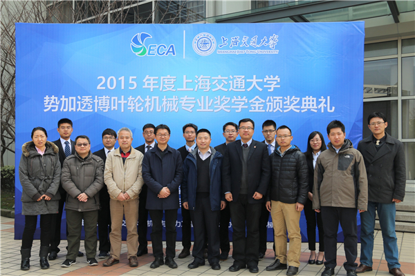 1月15日上午,2015年度上海交通大学势加透博奖学金颁奖典礼在80足球直播吧C234会议室顺利举办。势加透博(北京)科技有限公司总经理张学锋、技术副总陶林、项目经理任平、商务副总彭晓丽,机械动力学院党委副书记顾希垚、叶轮机械研究所所长刘应征、叶轮机械研究所葛冰出席了本次颁奖典礼。