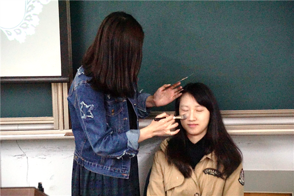 7日晚,由机械动力学院学生会邀请的资深彩妆造型师李采桦,以其多年的工作经历以及与多名明星大咖们的合作经验,为交大女生带来了一堂精彩的化妆讲座。李采桦女士结合课程内容,在现场亲自为一名女生化妆来为大家讲解,在化妆中不断地回答每一位同学提出的问题,以其专业知识和个人魅力吸引着在座各位,以其生动耐心的讲解、丰富有趣的总结赢得阵阵掌声。最后,机械动力学院学生会还为李女士和到场女生们准备了小礼物。