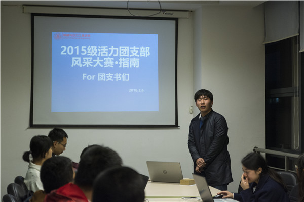 最后,由实践部部长张和坤组织了大赛出场顺序抽签。希望在此次团支部风采大赛中,各位团支书能够发挥自己的才干,充分调动同学们的积极性;也希望15级的同学们在台前幕后尽情挥洒才艺与激情,展现15级团支部夺目的风采!