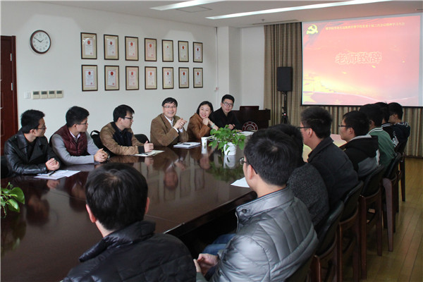 预备党员代表徐辉、入党积极分子代表潘劲松带领全体支部成员对两会及学校党委十届三次会议精神进行了学习。从“雾霾”、“环保”等两会话题,到“建设一流大学”、“学在交大”等学校党委十届三次会议精神,都进行了深入的讲解。大家表示收获颇深。