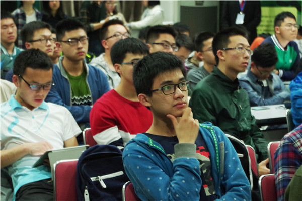谭嘉伟简单介绍了交大毕业的一些设计师及其设计作品,然后重点讲述了自己从交大工科学生转行到汽车设计师的历程心得,由最初的尝试到抑郁与彷徨,以及最后重新坚定汽车设计之路,其间不乏各种选择。他对各种选择的利弊分析以及应对低谷挫折的态度,给了在座观众众多启示。此外,他表明日后与王在赫在国内创业的主要方向是设计教育创新理念,希望做国内汽车设计发展的领路人。