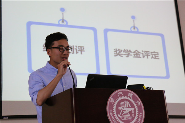 随后,武戈向同学们简述了综合测评的目的和流程,并对奖学金的分类、评定流程以及与综合测评的关系作出简介,解决了同学们在相关问题上的疑惑。