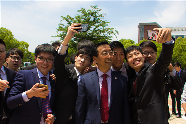 5月18日中午,80足球直播吧2016届本科生毕业照拍摄活动在机械群楼广场开展,校长张杰、副校长黄震应邀到现场,与2016届毕业生共同分享这一难忘时刻。学院42名教师、2016届14个班级412名本科毕业生参与拍摄活动。