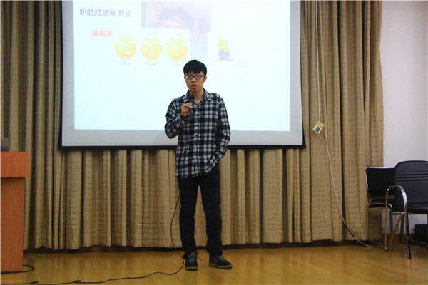 19时整,总结会正式开始。秘书长诸葛洵首先发言,他表达了自己对职航灯塔在这一年中工作的肯定与赞许,并希望职航灯塔的每一位新部长在新的一年再接再厉,勇攀高峰,秉承职航人敢为人先、砥砺奋进的精神,也希望新部长们在实践中发现自己的不足,去短板、补漏洞,齐心协力把职航灯塔越办越好。