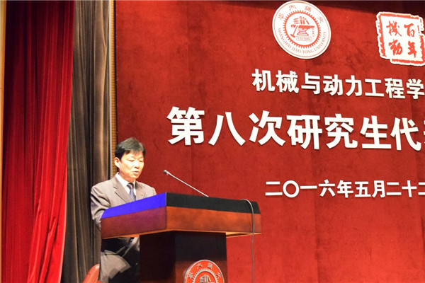 杜朝辉代表学院党委向大会寄语。他充分肯定了学院第七届研究生会两年来辛勤工作和喜人成绩。他代表学院党委向全院研究生提出三点希望:一是志存高远,勇挑重担,树立更远大的目标,拥有更远大的胸怀;二是热爱学术、认真钻研,勇攀学术高峰,探求科学真理;三是坚守责任,脚踏实地,携手实现制造强国的中国梦。