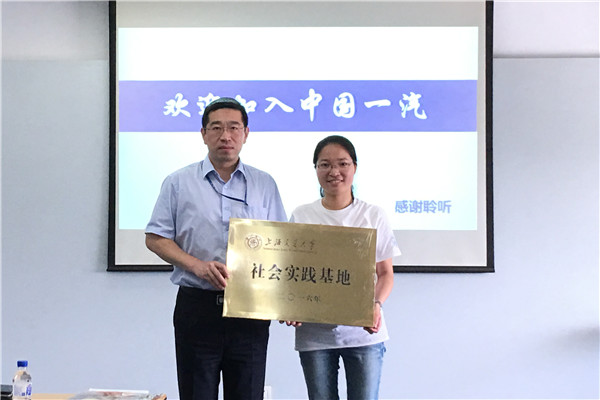 上午,实践团成员抵达一汽总部并与三位交大校友开展面对面交流。首先,康健简单介绍了汽车行业未来的发展需求,并详细阐述了企业的招聘流程和企业的人才培养方案。三位校友谈了谈自己毕业后在一汽工作这段时间以来的经历和感受。实践团成员还与校友们交换了各自对于汽车行业发展的想法。座谈会最后,林秀娟代表机动学院向一汽赠送了2016年上海交通大学实践基地铜牌。