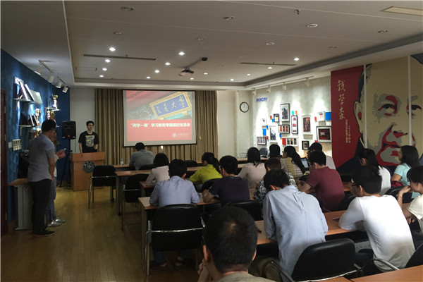 硕士研究生赵柏扬介绍了“两学一做”的学习内容并对党章核心内容进行了阐述,强调了党章、党规对于党员廉洁自律的规范和重要性,要求深刻学习领会习近平总书记系列重要讲话精神,将“两学”重要教育内容落实到“做”上,落实到每个党员的实际行动上。赵柏扬介绍了党章的历史和发展,特别是习近平总书记领导下在新时代新环境下对党章的修改完善。随后带领大家学习党章部分章节的主要内容,包含党章总纲、入党条件、党员义务等。