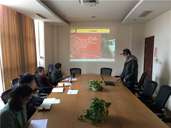 3月11日下午,入党答辩面试分研究生和本科生两组分别在F203和A124举行,答辩委员会由学生党总支成员、学工办思政教师、辅导员及党建联合会骨干组成。面试采用PPT展示的方式,发展对象阐述入党动机、对党的认识,展示自己在理论知识学习方面的进步,介绍平时践行为人民服务的宗旨的点点滴滴,并真诚剖析自身不足,提出今后的努力方向,各位评委还进行现场提问。答辩中,大多数同学入党动机端正,理论水平明显提高,平时积极参加学生工作和志愿公益,体现出先锋模范作用。