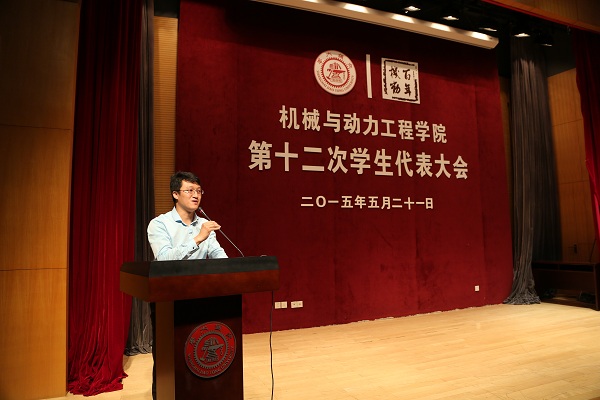武超动情地回顾了在机械动力学院十年来学习工作的经历,分享了自己的收获和感悟,并结合校第二十九次学代会提出的两个特别议案,号召交大学子以主人翁的姿态关注校庆、融入校庆,为母校120周年校庆贡献力量;积极响应“倡导学在交大、弘扬学术精神”的理念,开展相关活动,以身作则,提升学术价值追求。武超指出,学代会作为“民主”的载体,应发挥其积极作用;正处青春年华的机械动力学子更要拥有各自的价值追求,为学院的发展奉献自己的一份力量。