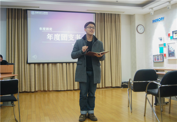 接下来进行的是2015“年度团支书”以及分团委特色奖项的颁奖典礼。本次“年度团支书”奖项是通过综合考察团支书在班级团支部一年的工作表现而评选出的,展现了团支书们个人的风采和高度责任感。最终,F15级团支书虞珍霞、崔畅、施轶炜获得本次“年度团支书”称号。团委特色奖项的颁发则颇有谐趣,阵阵笑声使大会的氛围更加活跃。