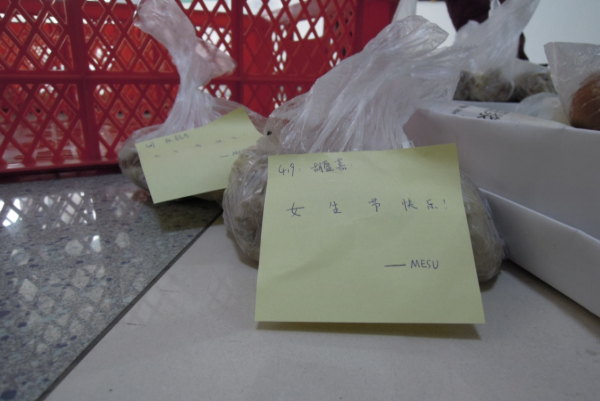 3月7日一早,学院学生会为学院50多位女生送来了热气腾腾的爱心早餐。为了满足女生的口味,学生会干事提前一天深入寝室统计好每一位女生的理想早餐,并早早来到三餐排队购买,还为每一份早餐写上专属祝福语。不到七点,丰盛的早点和新鲜的玫瑰就送到了每一间寝室门口,让女生们享受到了“送货上门”的贴心服务。8日下午,学生会干事将一周时间亲手制作的创意礼物送到每位女生手里。干事们利用软件设计并前往工程训练中心加工,将女生的生活照和祝福语通过激光雕刻在有机玻璃上。这份充满专业特色和男生心意的礼物收获了女生们一致好评。