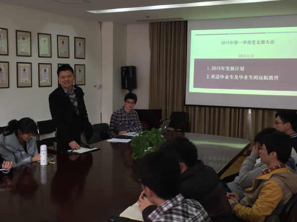 会议开始,金晓强就2015年的党员发展工作作了介绍。三位入党积极分子分别向大家作了自我介绍并请求所有党员同志对他们进行帮助和监督。随后,徐占成对各位入党积极分子表达了殷切的希望。同时,对于即将毕业的学生,徐占成希望他们能发扬交大毕业生的优良传统,以黄亮学长为榜样,在今后的工作中踏实肯干,努力奉献自己,不断提高自己的思想广度和深度,做一个对社会有用的人。