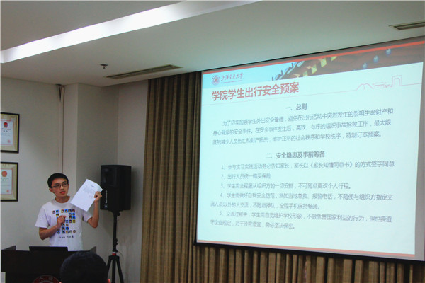 阮海涛按照学校“翼计划”暑期就业实习实践活动精神,向全体老师与学生介绍了本次实践活动的目的、途径、任务、总结与表彰,强调了安全问题的把关措施。学院就业中心杨珂为全体队员进行了安全教育,提醒同学们做好出行准备、紧急情况预案以及跟团队一起活动的要求,强调务必做到安全出发、安全返回。