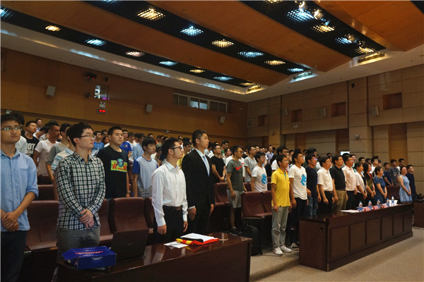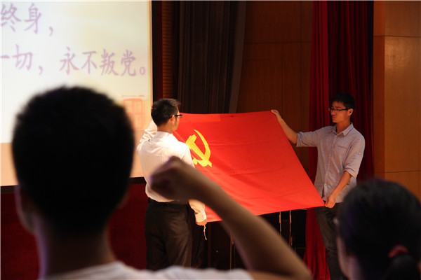 毕业生党员代表、校十佳党员标兵、国防生大队长陆雷带领党员同学重温入党誓词。大会在《歌唱祖国》的合唱声中圆满结束。