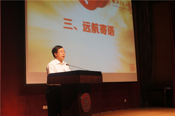 6月30日下午,80足球直播吧2016届毕业生党员远航暨“两学一做”专题教育大会在高田会堂举行。活动特别邀请中国联合航空公司党委书记、1994届校友张兰海担任主讲嘉宾。机械动力学院院长奚立峰、党委副书记顾希垚、学生党总支成员、2016届毕业生党员、新党员以及入党积极分子200余人出席,大会由F12级本科生党支部书记费垚主持。